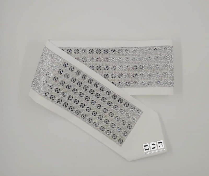 עטרה מהודרת ומיוחדת בשילוב אבני זכוכית כסופות בדוגמה אחידה על רקע בד לבן